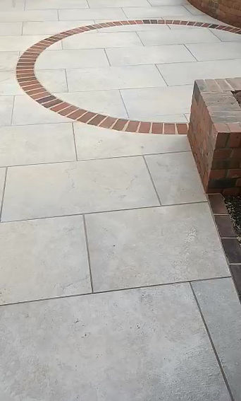 Witness the incredible transformation of our latest project featuring sandstone paving and curved brickwork!
